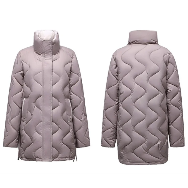 Denne model kombinerer komfort og raffinement for at møde den kolde sæson med stil. Dens moderne snit og høje krave sikrer et elegant udseende, samtidig med at den effektivt beskytter mod vinden. Let, men varm, bliver denne jakke et must-have i vintergarderoben, lige så praktisk som æstetisk.
