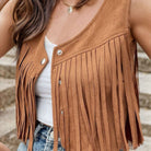 Αυτή η αμάνικη ζακέτα διαθέτει κομψές φούντες και λεπτομέρειες με εκλεπτυσμένα κουμπιά. Ο διαχρονικός σχεδιασμός της ταιριάζει σε διάφορες περιστάσεις. Ιδανική για να φορεθεί πάνω από τα αγαπημένα σας ρούχα.