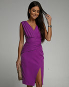 Élora | Vestido Midi Elegante – Escote En V y Corte Sutilmente Hendido