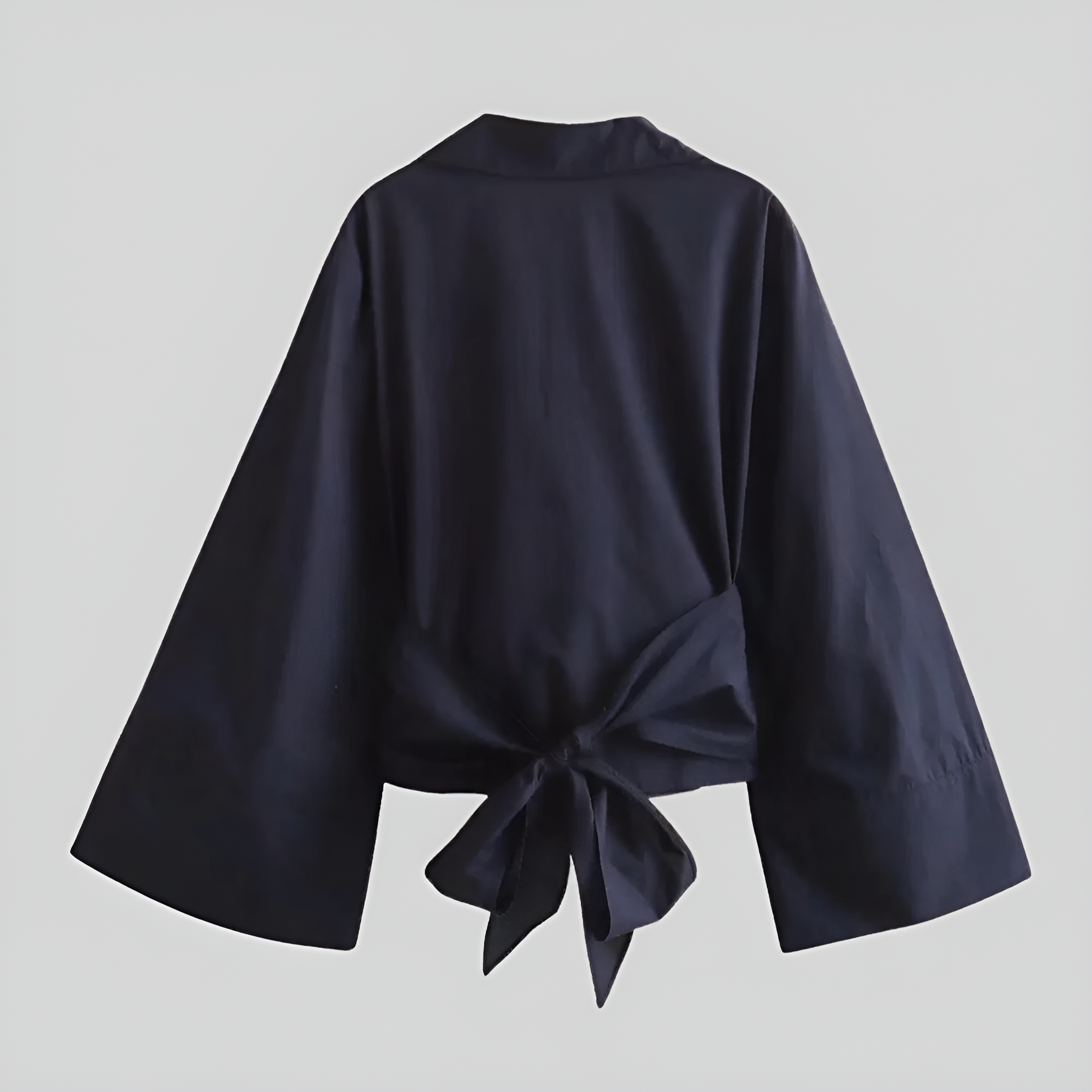 חולצת הקיץ הזו לנשים מציעה גזרה מחמיאה עם צווארון בצורת V ושרוולים מתרחבים. הסגירה הצולבת עם כפתורים כפולים מוסיפה נופך של sophistication. מושלמת לימים חמים, היא משלבת נוחות וסגנון.