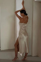 ג'ובנה | שמלת מידי מפוצלת – סגנון קל ורצועות עדינות