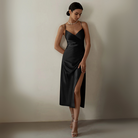 השמלה המידית עם החתך הצדדי מקסימה בעיצובה הזורם ובכתפיות הדקות שלה המדגישות את הסילואט באלגנטיות. החיתוך בצורת V מדגיש את החלק העליון של הגוף, בעוד שהחתך הצדדי מוסיף נגיעה של קלות ונשיות. אידיאלית לימים שטופי שמש או לערבים קיץ, היא משלבת נוחות וסגנון בפשטות.