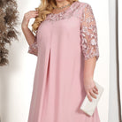 שמלה אלגנטית רקומה, מעוטרת ברקמות פרחוניות עדינות, שמלה קלה זו seduces עם הצווארון העגול הקלאסי שלה והשרוולים האמצעיים. היא מציעה הופעה אלגנטית, מושלמת לאירועים מיוחדים או לערבים מעודנים