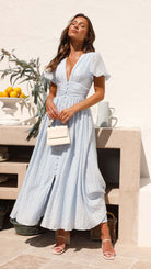 טילדה | שמלה ארוכה בקיץ עם צווארון V – אלגנטיות קלילה וסגנון קיץ