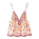 החולצה ללא שרוולים הזו מפתה עם הדוגמה המושפעת מהאמנות האצטקית וצבעיה הבוהקים. קלילה וזורמת, היא מושלמת לימים שטופי שמש, משלבת נוחות וסגנון נינוח.