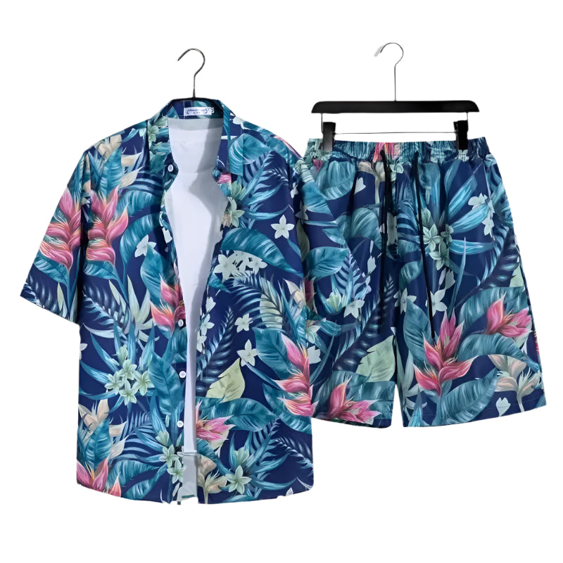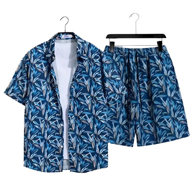 Ez a könnyű és légáteresztő szett ideális a meleg napokra. Rövid ujjú inget és hozzá illő sortot kombinál, hogy laza megjelenést biztosítson. Tökéletes nyaraláshoz, szabadidőhöz vagy mindennapi használatra.