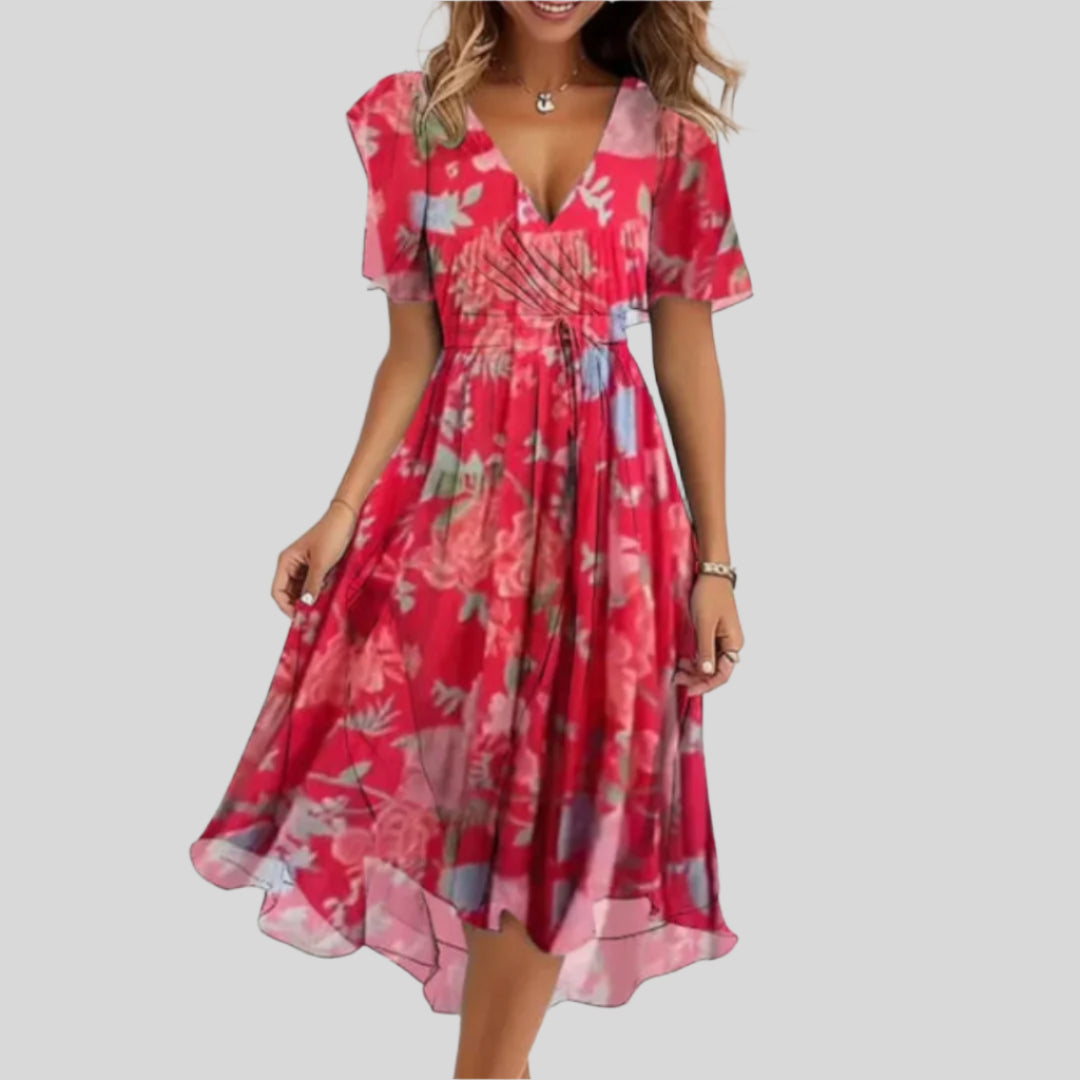 Élodie | Folyékony Ruha Virágmintával és V Nyakkivágással