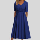 Ez a rövid ujjú, hosszú, keresztbe zárt ruha vonzó sziluettet kínál. Elegáns dizájnja különböző alkalmakhoz illik. Több színben elérhető, hogy megfeleljen a stílusának.