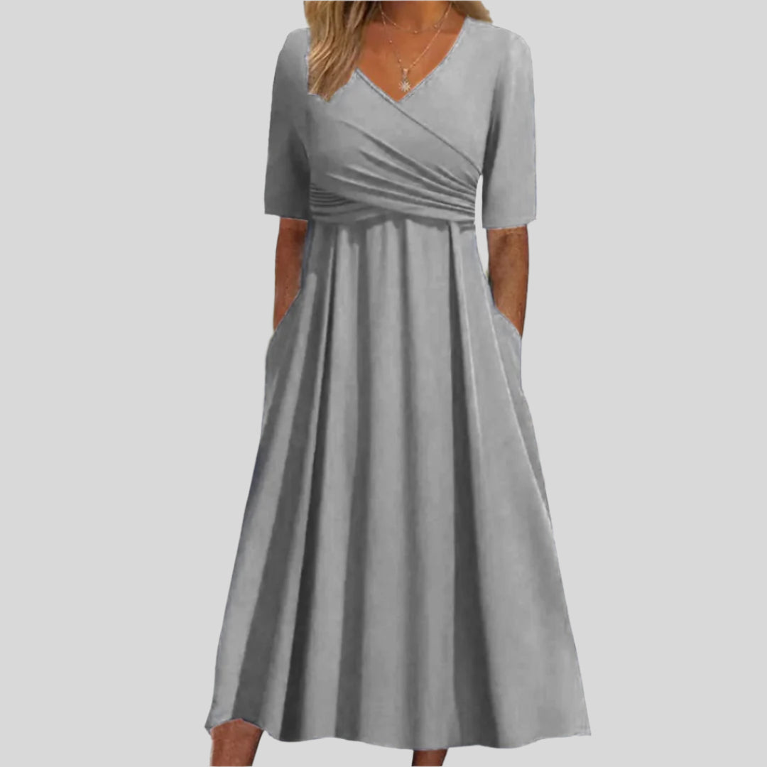Faustine | Hosszú Keresztbe Tett Ruha Rövid Ujjakkal