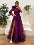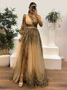 アデライン | フラワープリントのチュールスリットロングドレス – 優雅さと洗練