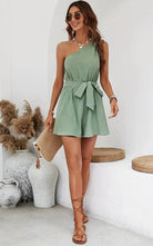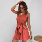 ファニー-ピンク | エレガントなショートオールインワン 片肩