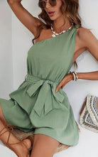 この片肩のショートオールは、モダンで洗練されたカットを提供します。暑い日にはぴったりで、快適さとスタイルを兼ね備えています。アシンメトリーデザインがあなたのワードローブに独自のタッチを加えます。