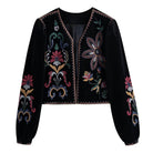 Ta krótka kurtka w kwiatowy wzór ucieleśnia kobiecą urodę pełną uroku i charakteru. Jej kolorowe wzory wyróżniają się na głębokim czarnym tle, tworząc subtelny i harmonijny kontrast. Lekka i przyjemna w noszeniu, łatwo komponuje się z różnymi strojami, tworząc styl jednocześnie nowoczesny i wyrafinowany.
