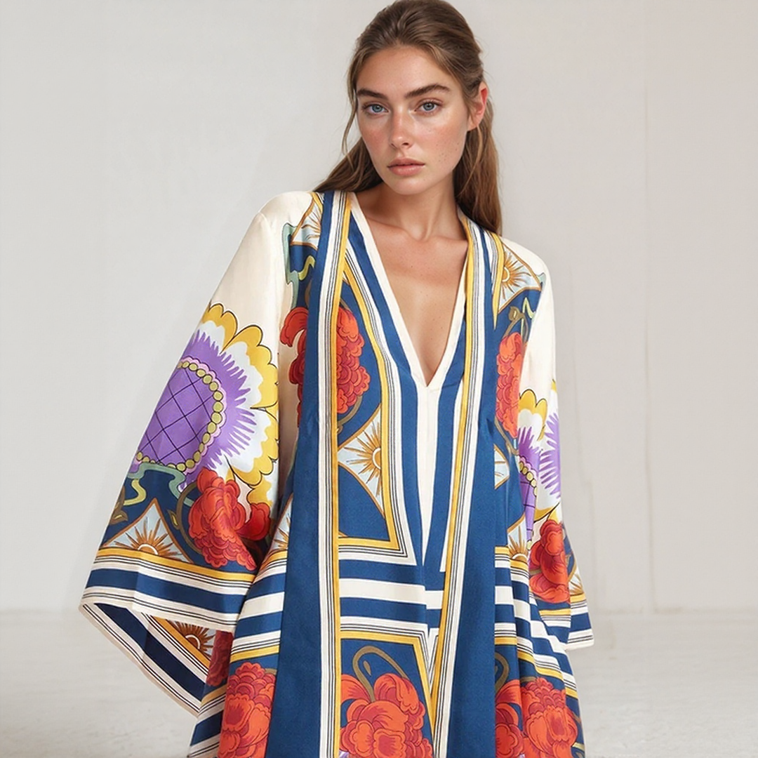 Djamila | Rochie Maxi Kaftan Bohémă – Eleganță Relaxată Și Fluidă