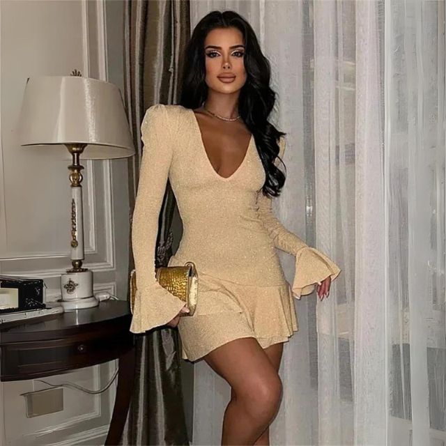 Candice | Mini Rochie Strălucitoare cu Mâneci Evazate